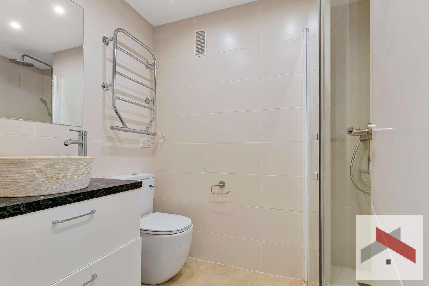 The apartment welcomes you with an entrance hall, a fully equipped kitchen and utility room, a spacious living room with access to the terrace in two directions, and three bedrooms and two bathrooms with showers. All three bedrooms have access to the terrace in the southwest and built-in wardrobes. There is also extra wardrobe space in the inner hall. The part of the terrace facing south has glass curtains and makes an extra living room with fantastic sea views. All bedrooms and lounge have air condition. The apartment has been reformed continuously over the years and is in good condition.