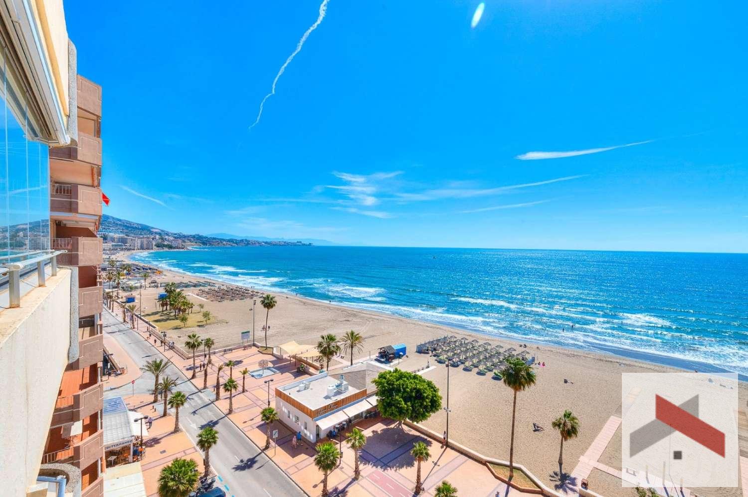 Front line apartment in Los Boliches completely renovated. Fantastic views of the sea and mountains from the corner terrace on the ninth floor. The apartment was completely renovated about 5 years ago and is ready to move into. Very good location in Los Boliches close to all services; supermarkets, restaurants, the train station etc.