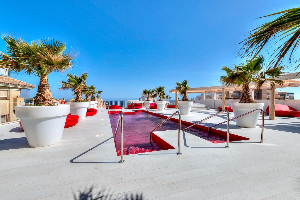 Fantásticas vistas al mar desde el momento que entras por la puerta a esta propiedad recién construida situada a 50 mts de la playa.