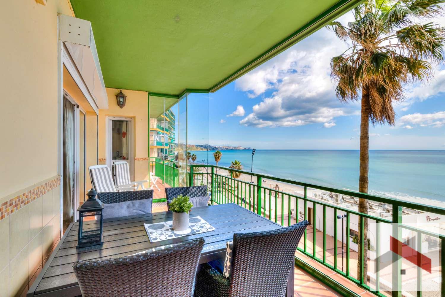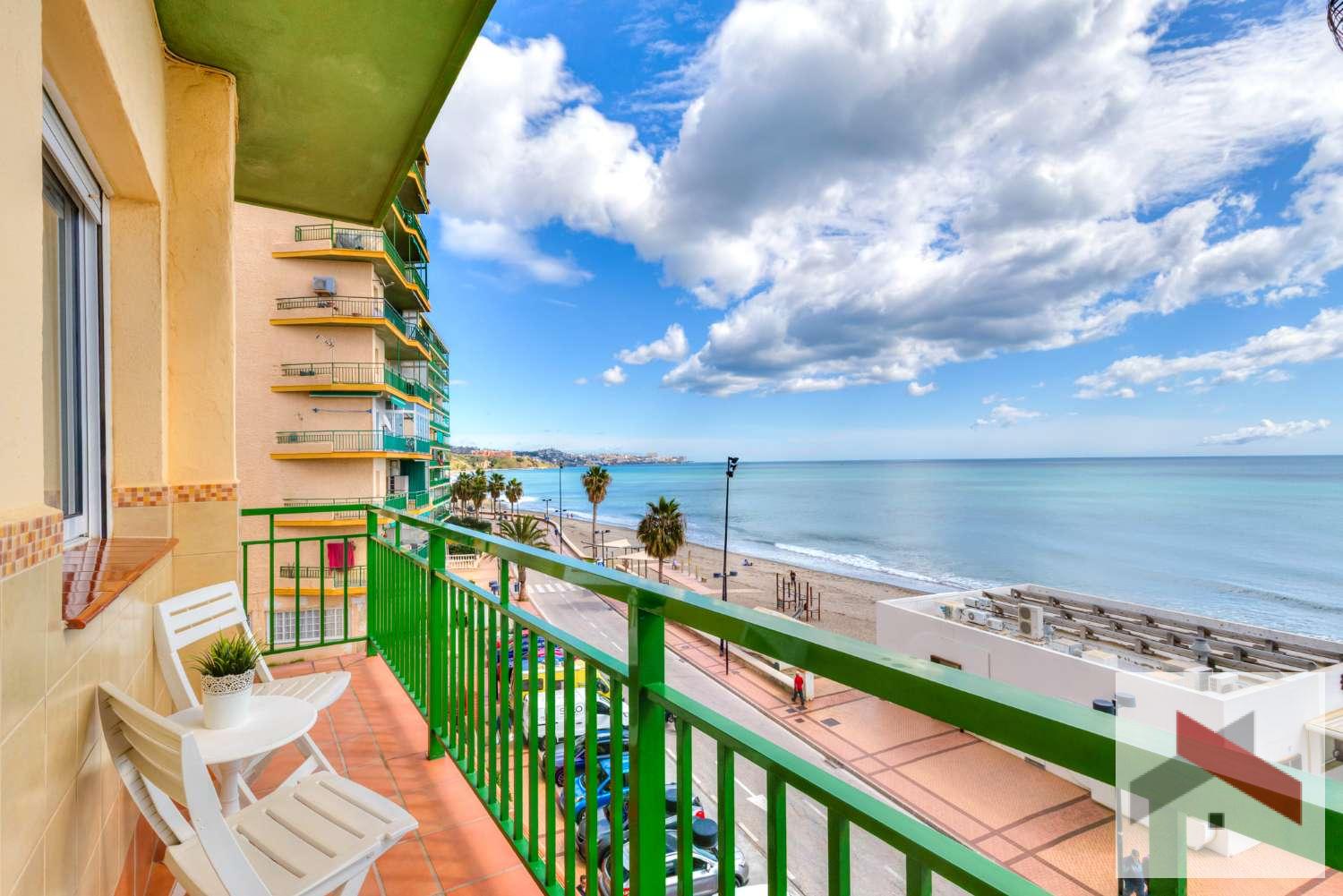 Precioso piso en primera línea de playa en Carvajal, Fuengirola, con fantásticas vistas al mar. El piso se encuentra en muy buen estado y se vende completamente amueblado. A poca distancia encontrará varios restaurantes y cafeterías agradables, además de una parada de autobús.