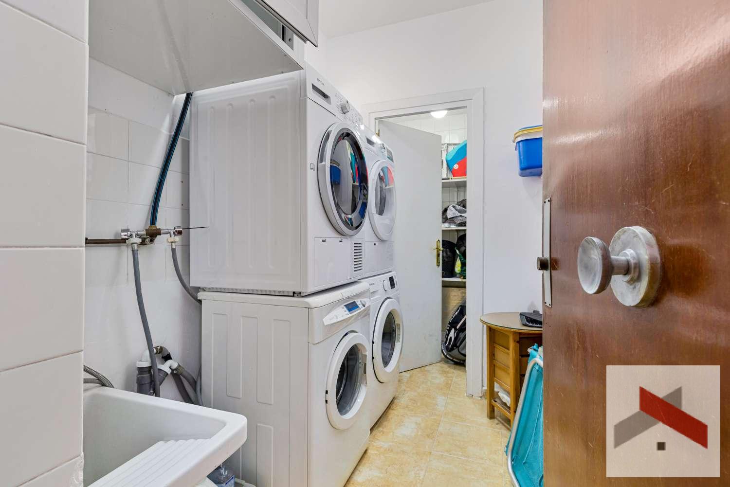 En la escalera exterior del apartamento hay un lavadero compartido con el vecino más cercano; cada uno tiene su propia lavadora y secadora, y también hay un trastero.