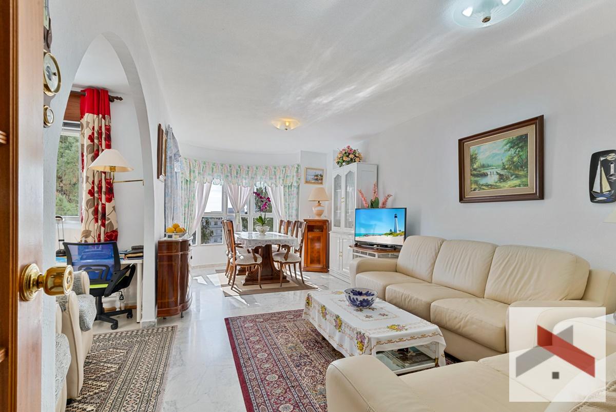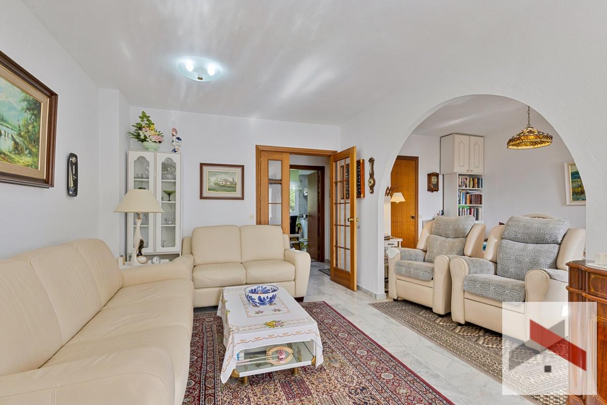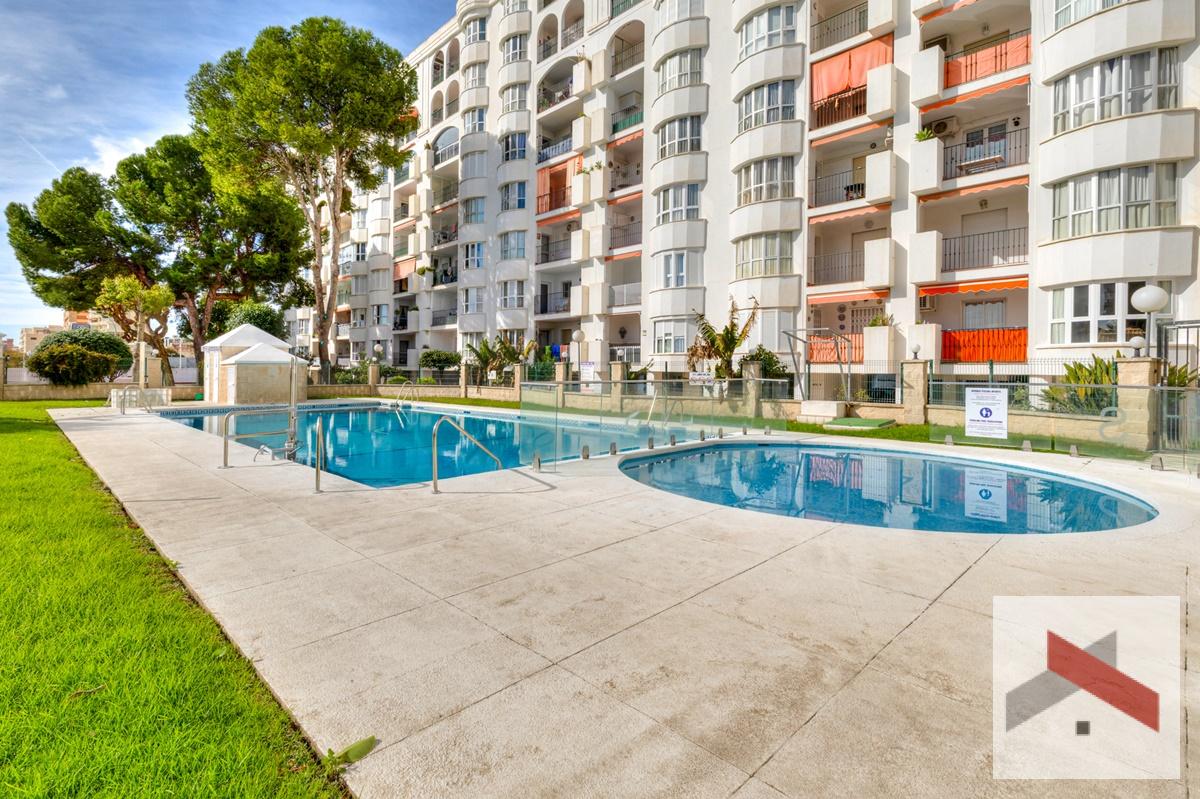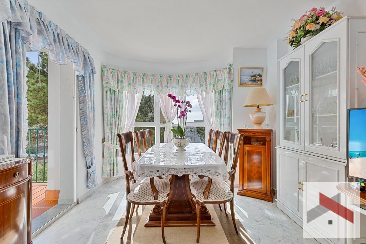 Amplio y luminoso Apartamento situado a solo 200 metros de la playa y a 450 metros de la estación de tren de Los Boliches. A poca distancia de restaurantes y tiendas. El apartamento cuenta con una bonita terraza de unos 10 m² orientada al sur con vistas al mar y al jardín comunitario con piscina.